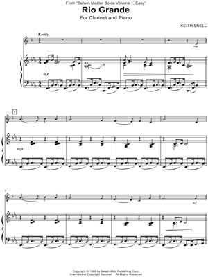 2. Rio Grande - Clarinet (click here to preview and play this piece) Composer: Scored For:Instrumental Part Instrument:Clarinet, range: C4-Bb4 Number of pages:1 Click here to purchase this piece separately for $2.99 |