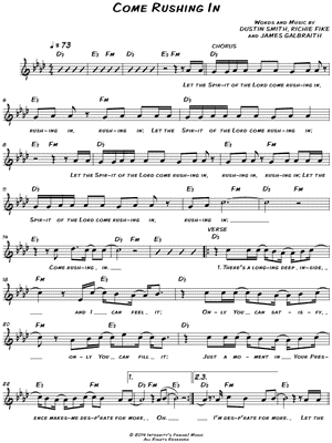Lyrics begin: "Let the Spirit of the Lord come rushing in, rushing in, rushing in;"