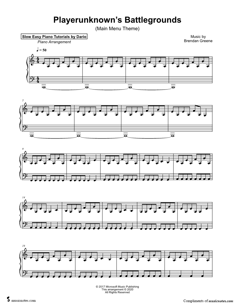 PlayerUnknown's Battlegrounds (Main Menu Theme) [Slow Easy Piano Tutorial] |
