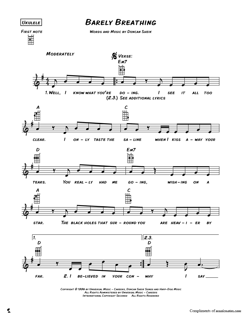 Ukulele/Vocal/Chords Leadsheet |