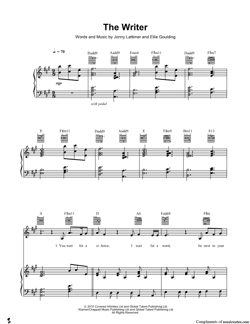 Musicnotes sells a wide variety of digital sheet music products including Singer Pros, Beginner Notes, Choral music, Piano Solos, Lead Sheets, Piano/Vocal/Guitar, Solo and Accompaniment, and fretted instrument tablature.