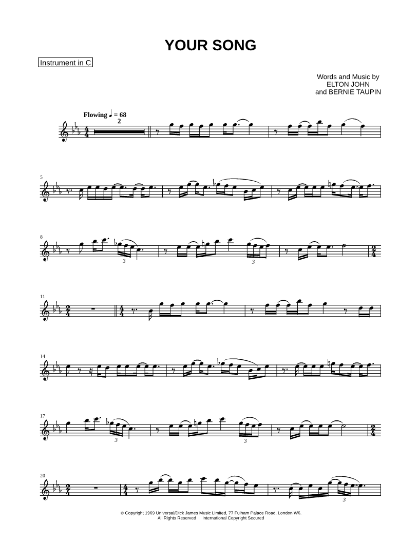 Your Song - C Instrument |