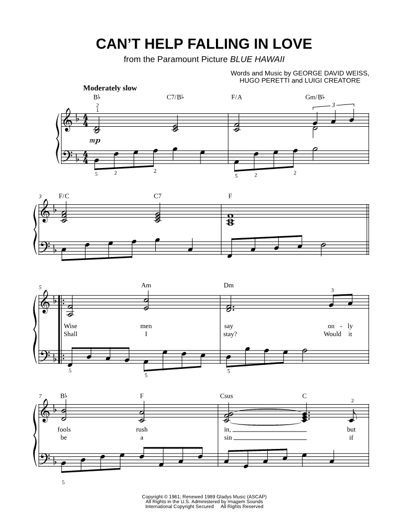 Wise men say only fools rush in, but I can't help falling in love with you. |