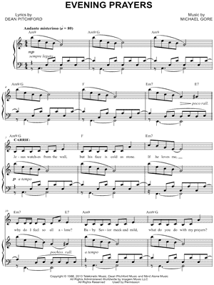 Browse our 1 arrangement of "Evening Prayers." Sheet music is available for Piano, Voice 1, Voice 2 with 2 scorings in 2 genres. Find your perfect arrangement and access a variety of transpositions so you can print and play instantly, anywhere.
