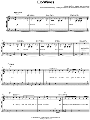 Lyrics begin: "Divorced Beheaded Died Divorced Beheaded Survived"