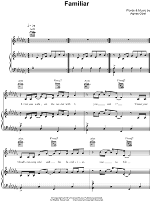 Browse our 1 arrangement of "Familiar." Sheet music is available for Piano, Voice, Guitar with 1 scoring in 4 genres. Find your perfect arrangement and access a variety of transpositions so you can print and play instantly, anywhere.