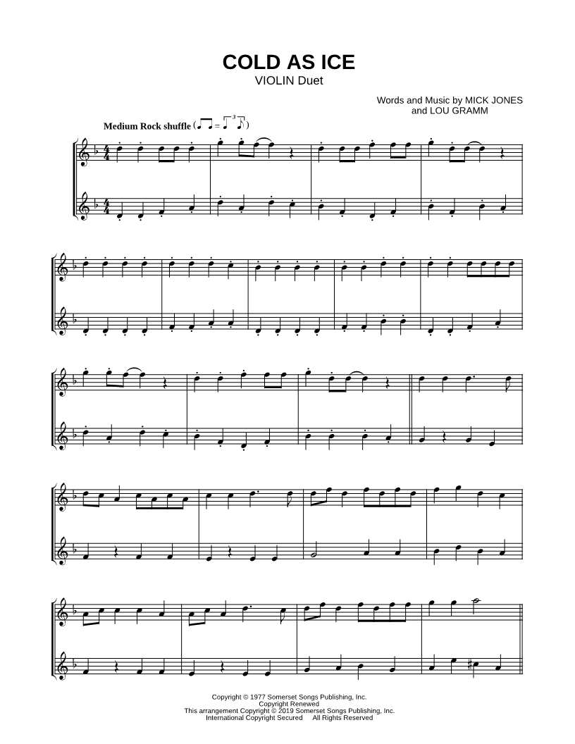 Cold as Ice - Violin Duet |