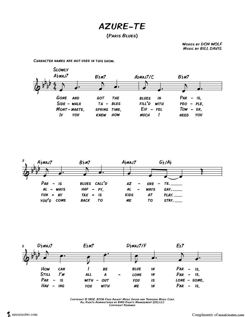 Leadsheets typically only contain the lyrics, chord symbols and melody line of a song and are rarely more than one page in length. Musicians will often use these skeletons to improvise their own arrangements. Leadsheets often do not contain complete lyrics to the song.