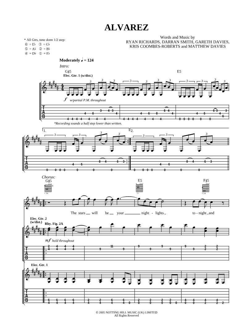 Voice 1, range: B3-C4 Guitar 1, range: E3-D#6 Guitar 2 Guitar 3 | |