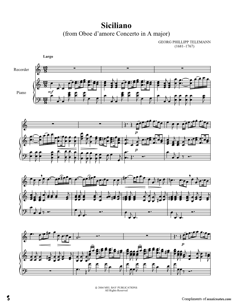Recorder, range: G4-A5 Piano Accompaniment | |