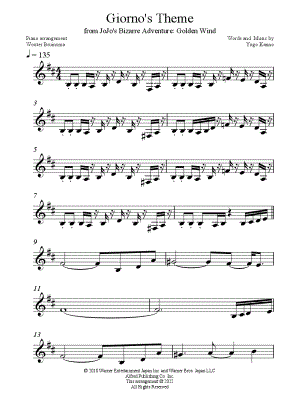 "Giorno's Theme" Sheet Music