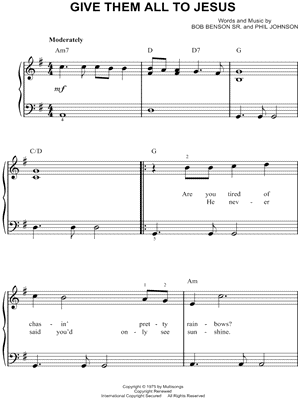 Browse our 3 arrangements of "Give Them All To Jesus."
