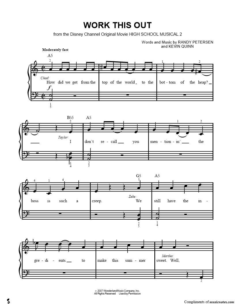 High School Musical 2 - Big Note Piano |
