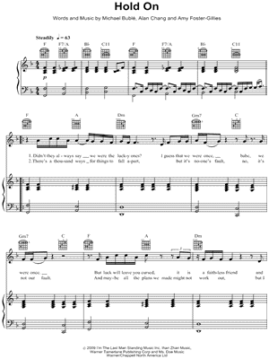 Browse our 3 arrangements of "Hold On." Sheet music is available for Piano, Voice, Guitar and 1 others with 3 scorings and 2 notations in 4 genres. Find your perfect arrangement and access a variety of transpositions so you can print and play instantly, anywhere.