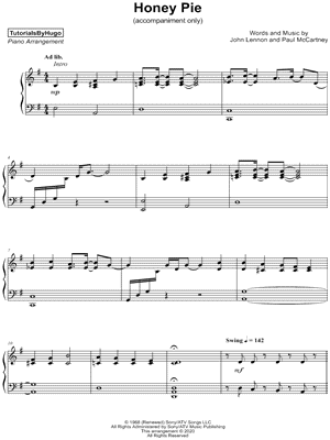 Browse our 7 arrangements of "Honey Pie." Sheet music is available for Piano, Voice, Guitar and 5 others with 8 scorings and 2 notations in 10 genres. Find your perfect arrangement and access a variety of transpositions so you can print and play instantly, anywhere.