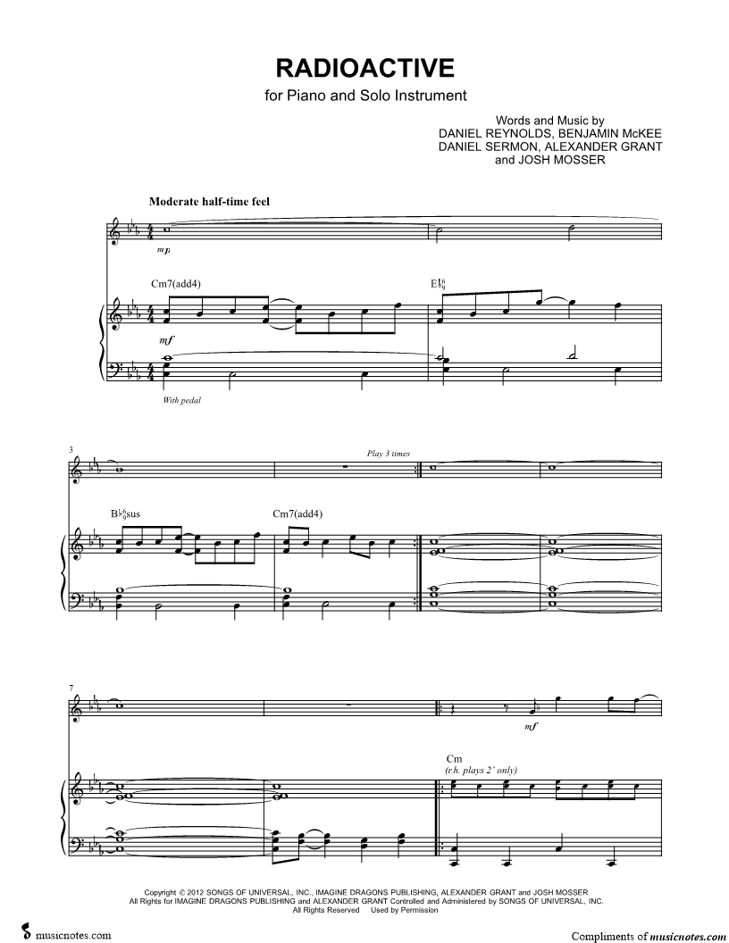 Radioactive - Eb Instrument & Piano