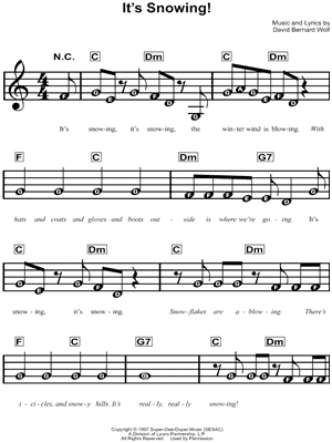 Lyrics begin: "It's snowing, it's snowing, the winter wind is blowing."