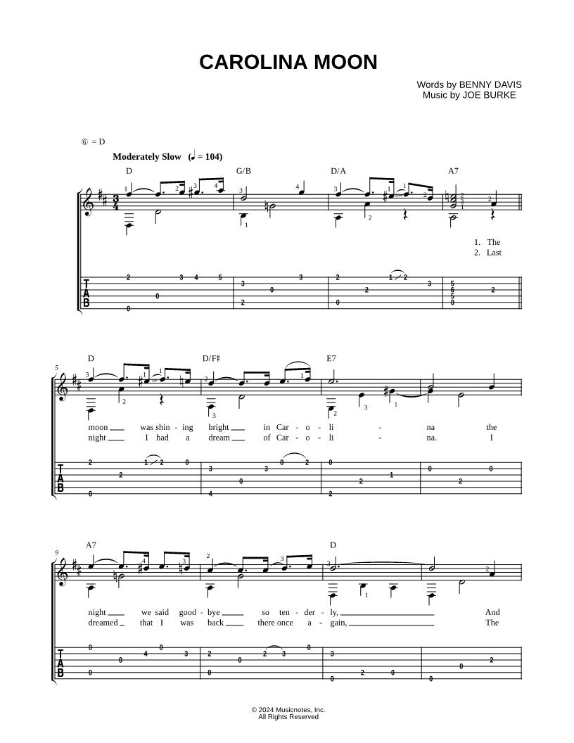 The moon was shining bright in Carolina the night we said goodbye so tenderly, |
