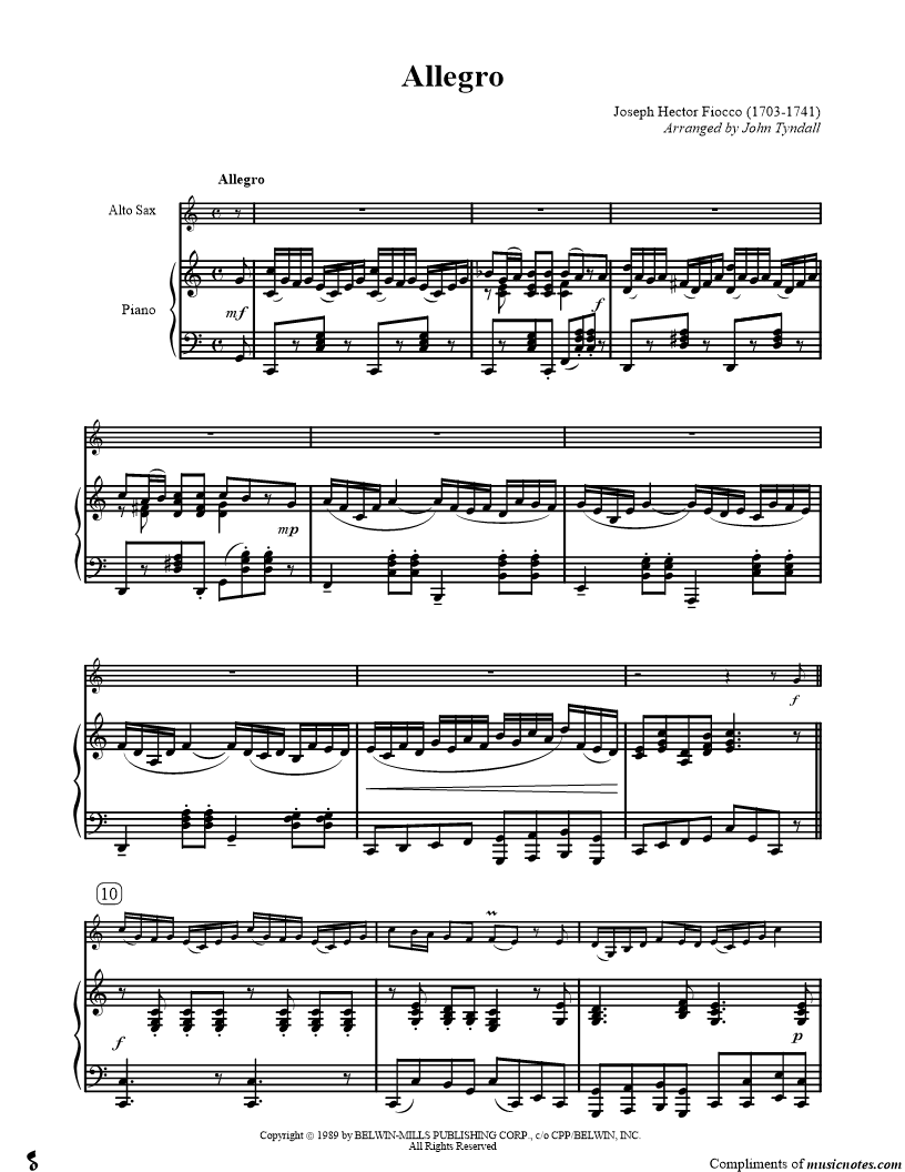 Collection: Allegro For Alto Saxophone' Alto Saxophone and Piano
