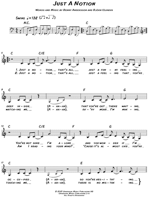 Lyrics begin: "Just a notion, that's all, just a funny feeling deep inside,"