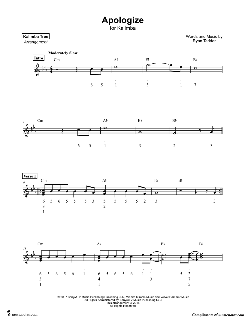Kalimba, range: Eb4-C6 | |