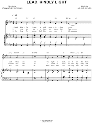 Lyrics begin: "Lead, kindly Light, amid th'encircling gloom, lead Thou me on!"