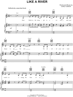 Browse our 1 arrangement of "Like A River." Sheet music is available for Piano, Voice, Guitar with 1 scoring in 4 genres. Find your perfect arrangement and access a variety of transpositions so you can print and play instantly, anywhere.