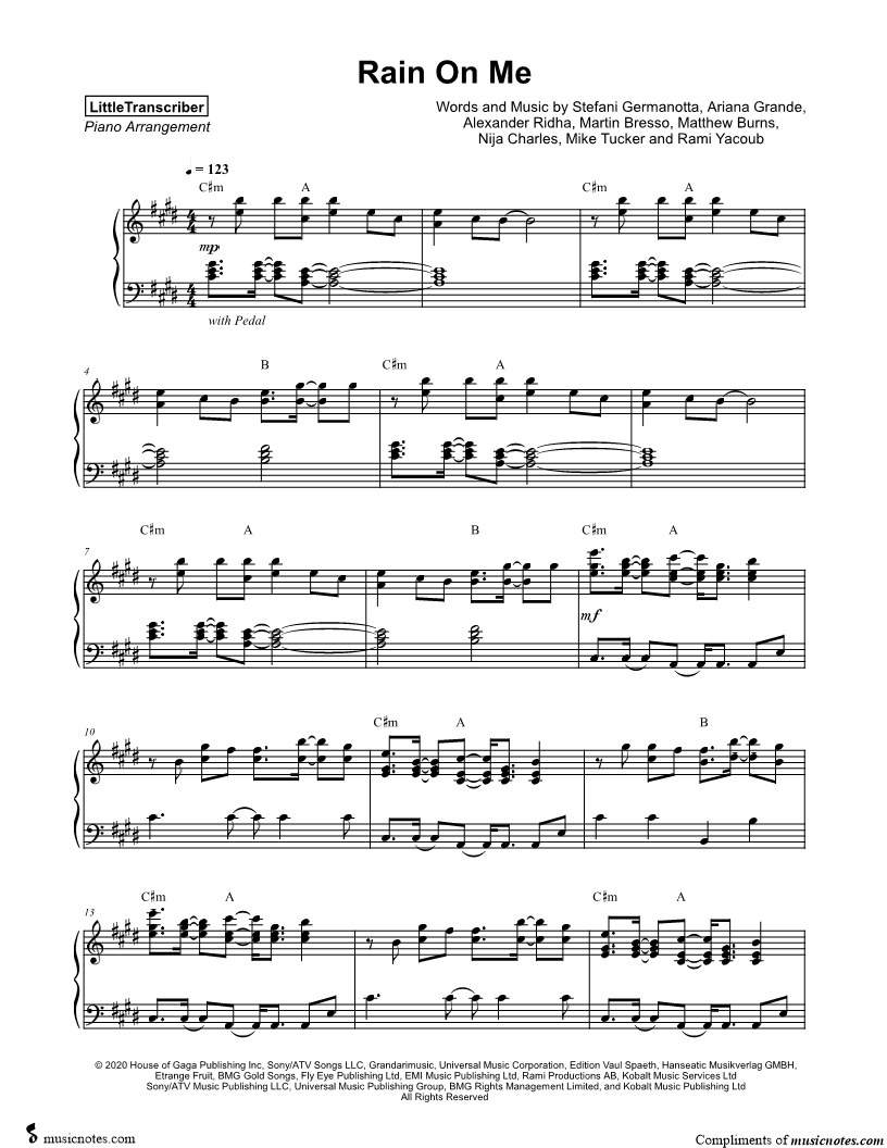 Many of the arrangements on Musicnotes have transpositions available, typically in C Major, as well as 3 sharps and 3 flats. If you do not see your desired key, you can request a transposition by reaching out to Customer Support.