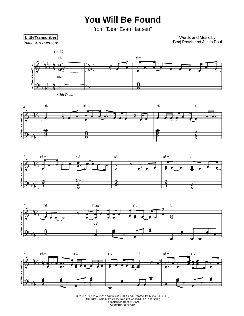 Many of the arrangements on Musicnotes have transpositions available, typically in C Major, as well as 3 sharps and 3 flats. If you do not see your desired key, you can request a transposition by reaching out to Customer Support.
