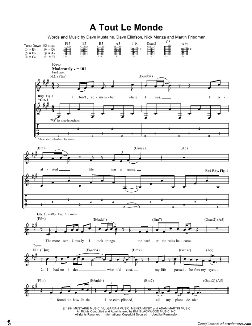 Guitar TAB Guitar/Vocal |