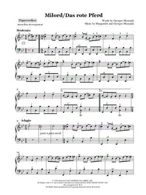 Browse our 4 arrangements of "MILORD." Sheet music is available for Piano, Voice, Guitar and 2 others with 3 scorings and 1 notation in 4 genres. Find your perfect arrangement and access a variety of transpositions so you can print and play instantly, anywhere.