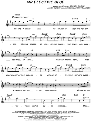 Browse our 4 arrangements of "Mr Electric Blue." Sheet music is available for Piano, Voice, Guitar and 2 others with 5 scorings and 1 notation in 2 genres. Find your perfect arrangement and access a variety of transpositions so you can print and play instantly, anywhere.