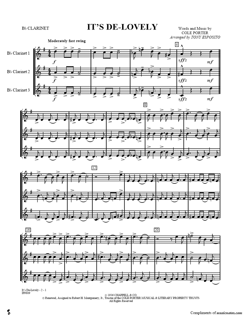 Clarinet 1, range: D4-G5 Clarinet 2, range: D4-E5 Clarinet 3, range: B3-D5 | |