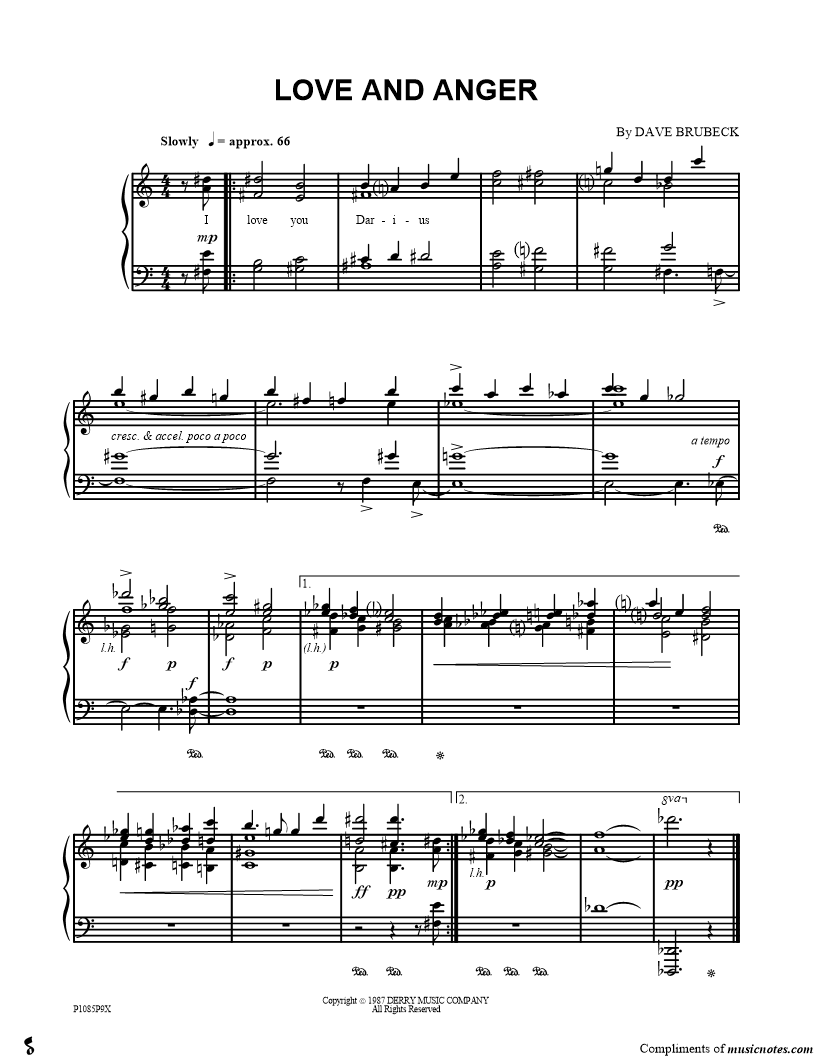 Dave Brubeck -- Dave's Diary Intermediate Piano |