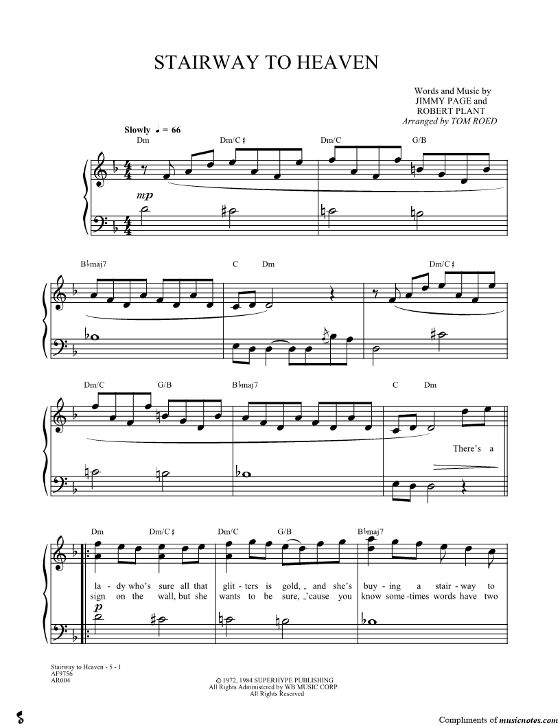 There's a lady who's sure all that glitters is gold, and she's buying a stairway to heaven. |