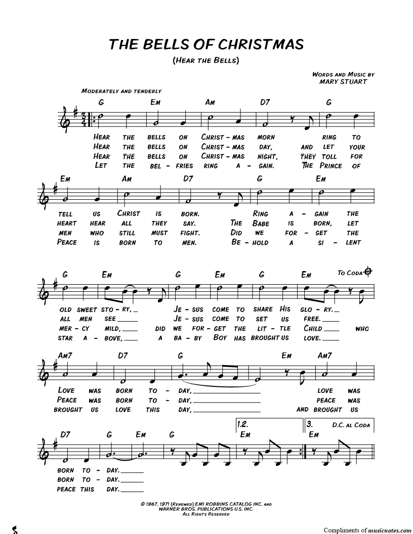 Hear the bells on Christmas morn ring to tell us Christ is born. |