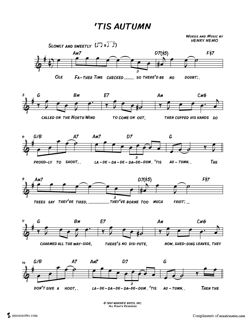 Ole Father Time checked so there'd be no doubt; called on the North Wind to come on out, then cupped his hands so proudly to shout, ladedadedadedum 'tis autumn. |