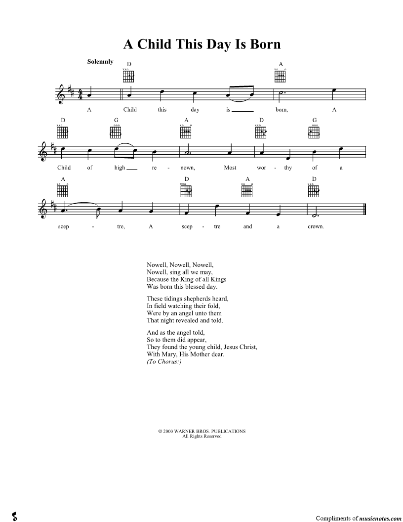 A Child this day is born, A Child of high renown, Most worthy of a sceptre, A sceptre and a crown. |