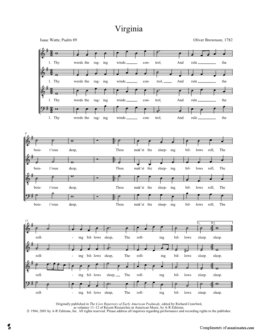 Thy words the raging winds control, And rule the boist'rous deep, Thou mak'st the sleeping billows roll, The rolling billows sleep. |