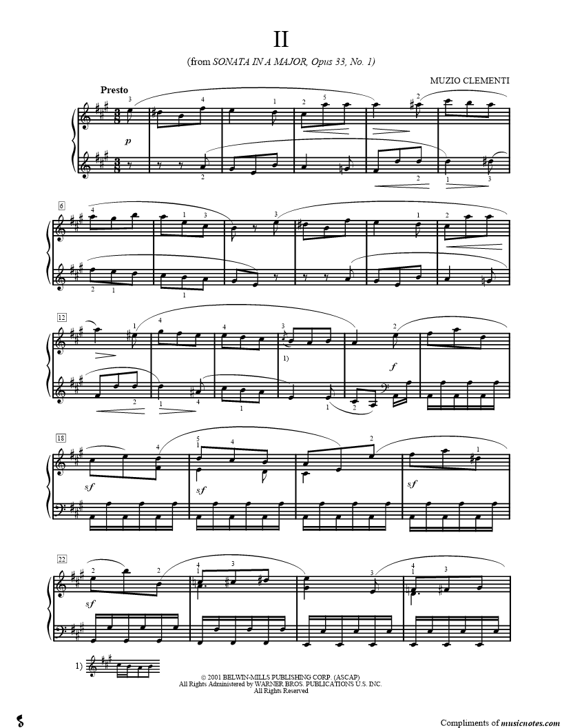 Sonata in A Major, Opus 33, No. 1: II. Presto |