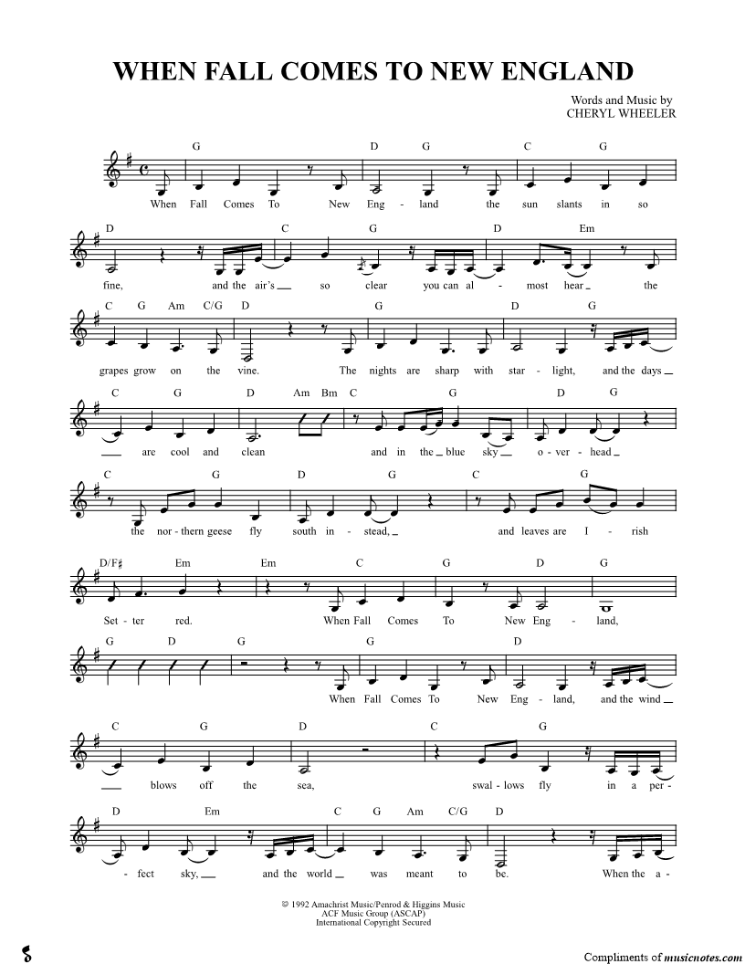 When Fall Comes To New England the sun slants in so fine, and the air's so clear you can almost hear the grapes grow on the vine. |