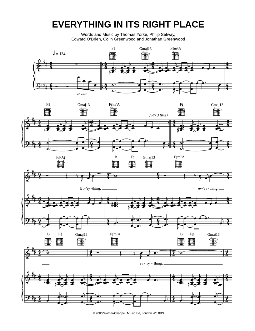 Everything, everything, everything, everything in its right place, in its right place, in its right place in its right place. Yesterday I woke up sucking a lemon. |