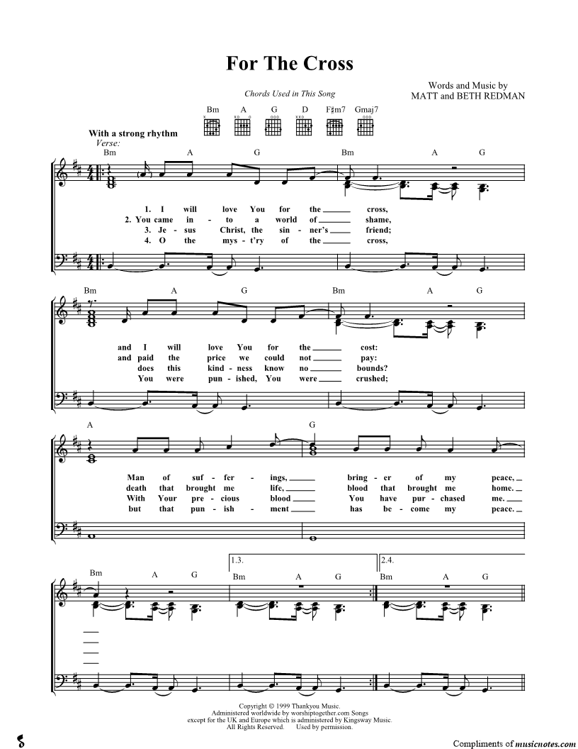 I will love You for the cross, and I will love You for the cost Man of sufferings, bringer of my peace, death that brought me life, blood that brought me home. |