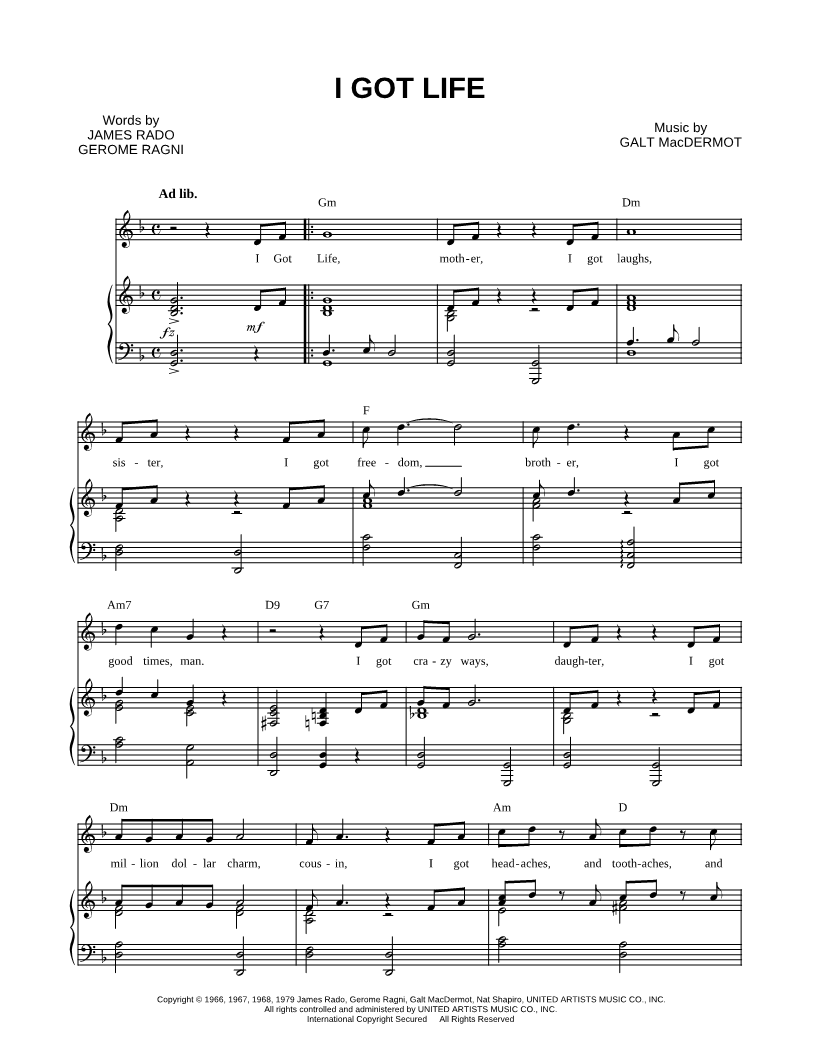 I Got Life, mother, I got laughs, sister, I got freedom, brother, I got good times, man. |
