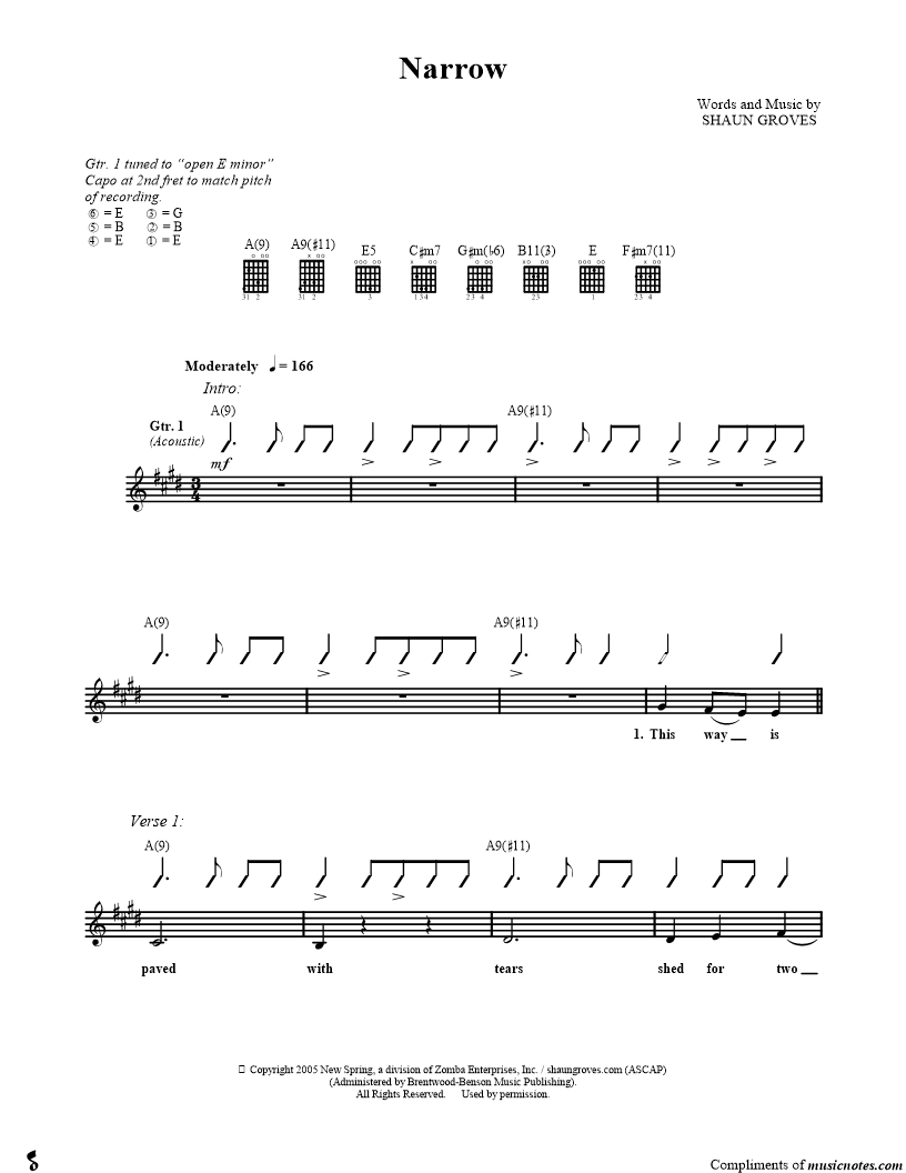 Guitar/Vocal Lyrics/Melody/Guitar Leadsheet |
