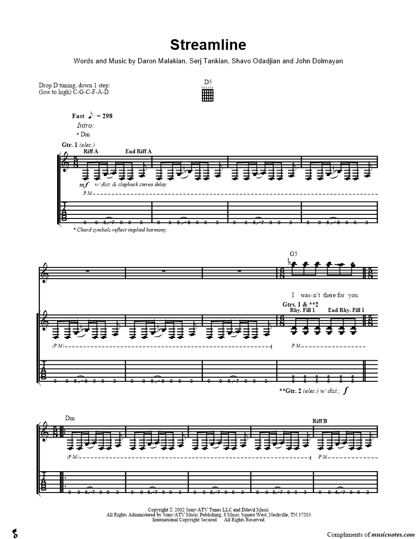 Voice, range: D4-D6 Guitar 1, range: D3-G6 Guitar 2, range: D3-A5 Guitar 3 Guitar 4 Guitar 5 Backup Vocals | |