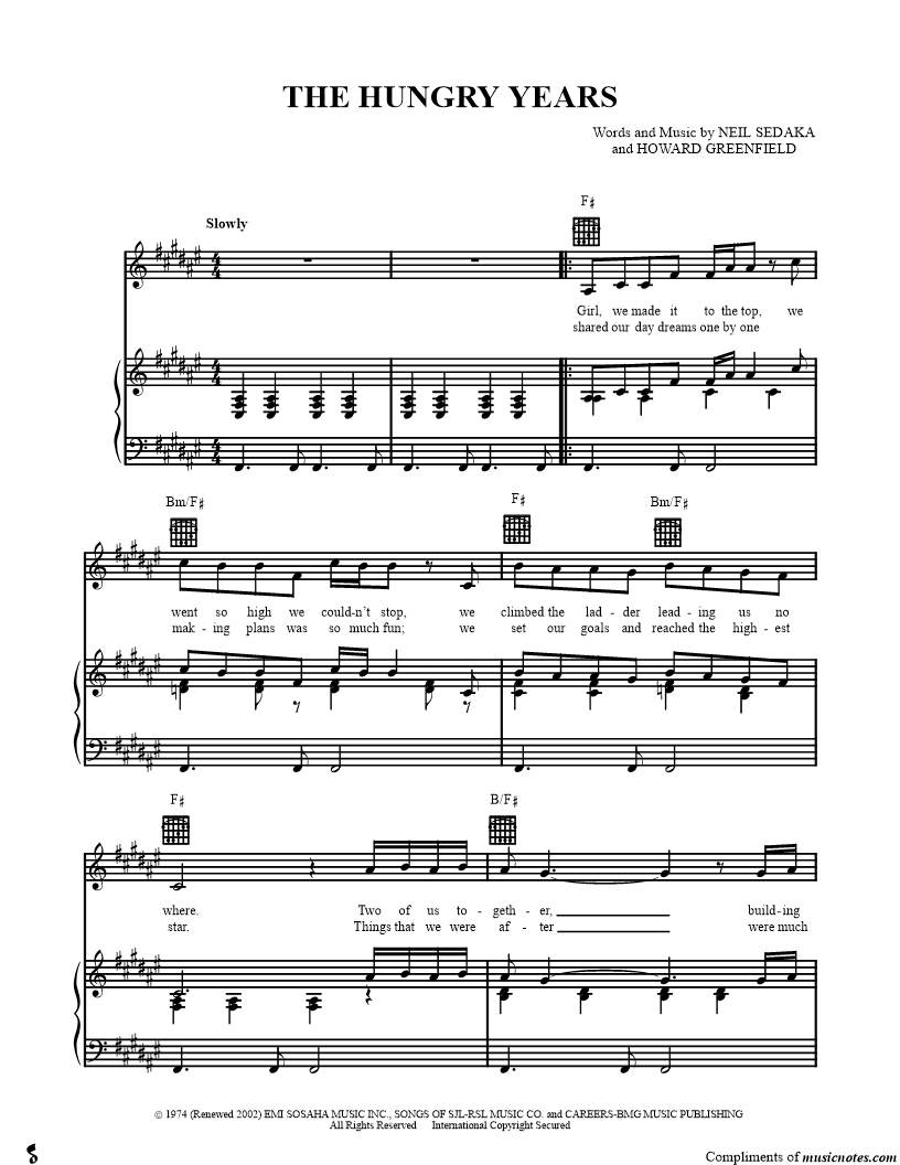 "Thank you for providing the sheet music for The Hungry Years, could get it anywhere else o..." Read reviews