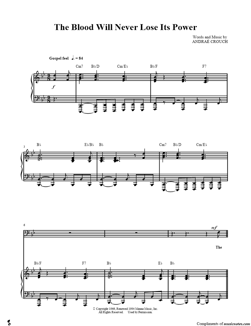 The blood that Jesus shed for me, 'way back on Calvary; the blood that gives me strength from day to day, it will never lose its pow'r. |