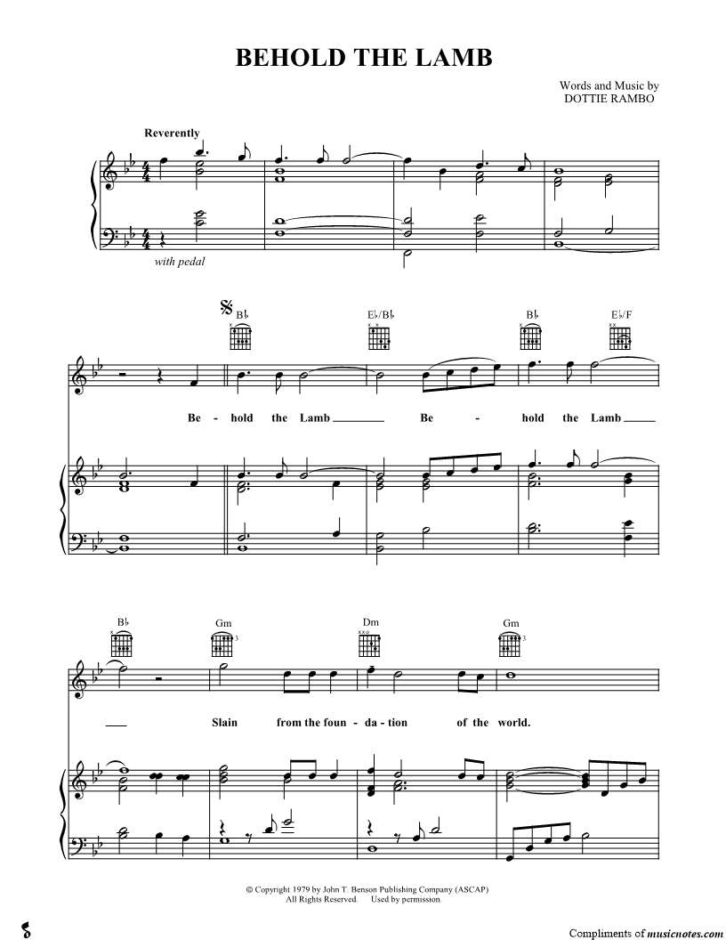 Behold the Lamb Behold the Lamb Slain from the foundation of the world. |
