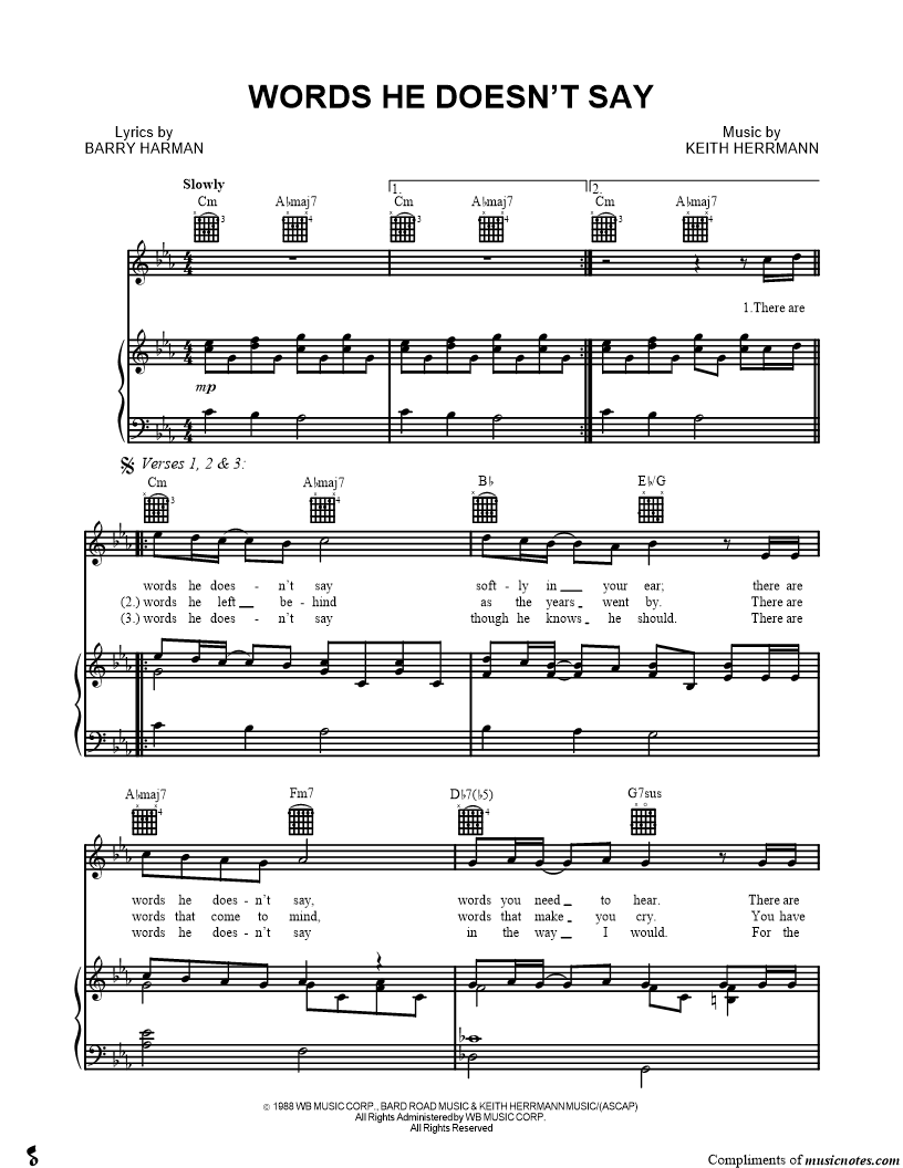 There are words he doesn't say softly in your ear; there are words he doesn't say, words you need to hear. |